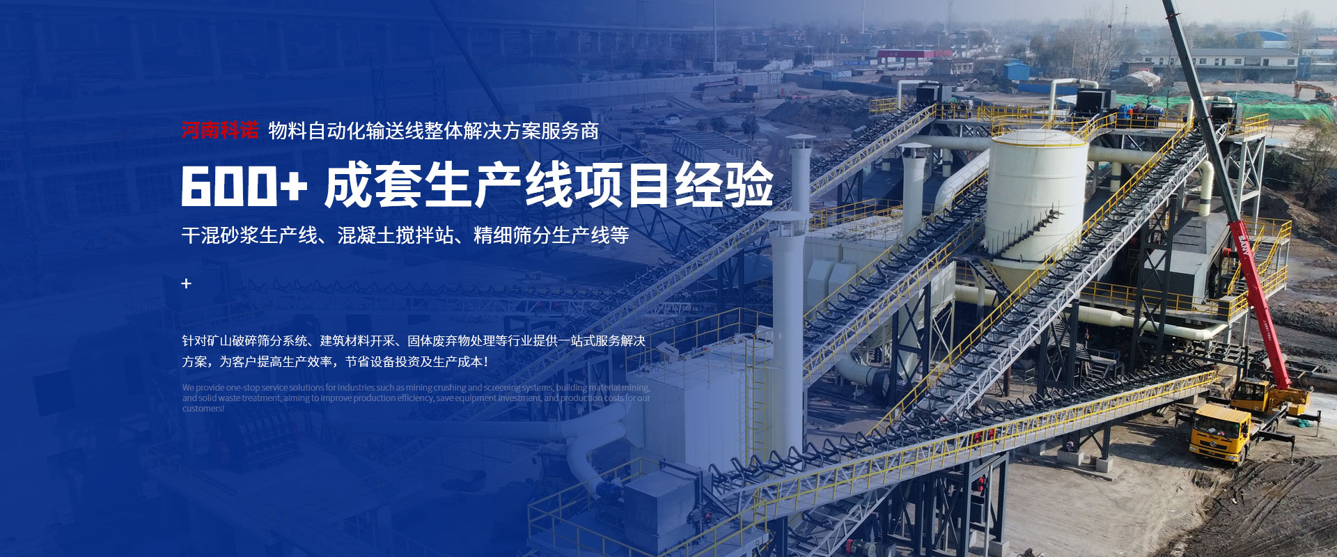 河南科諾機(jī)械設(shè)備有限公司成立于2017年,坐落于新鄉(xiāng)市高新區(qū)大數(shù)據(jù)產(chǎn)業(yè)園;是從事建筑、礦山機(jī)械設(shè)計(jì)、制造銷(xiāo)售的高科技企業(yè),主要產(chǎn)品有:精細(xì)篩分(搖擺篩、直排篩、平面回轉(zhuǎn)篩)設(shè)備、斗式提升機(jī)、環(huán)保自清輸送設(shè)備、高效脈沖除塵器、智能環(huán)保型振動(dòng)篩等單臺(tái)產(chǎn)品及特細(xì)砂干法制砂樓、精細(xì)篩分生產(chǎn)線(xiàn)、干混(粉)砂漿生產(chǎn)線(xiàn)、特種砂漿生產(chǎn)線(xiàn)、石膏砂漿生產(chǎn)線(xiàn)、混凝土攪拌站成套設(shè)備EPC總包項(xiàng)目等。產(chǎn)品廣泛應(yīng)用于礦山破碎篩分系統(tǒng)、建筑工程材料的開(kāi)采、固體廢棄物處理、化工、食品及其它等行業(yè)。公司以“與時(shí)俱進(jìn)、開(kāi)創(chuàng)未來(lái)”為企業(yè)宗旨;以“專(zhuān)注成套設(shè)備解決方案”為己任。秉承“科學(xué)進(jìn)取、千金一諾”企業(yè)理念,積累了良好的市場(chǎng)信譽(yù),并獲得了廣大客戶(hù)的信任和好評(píng)。